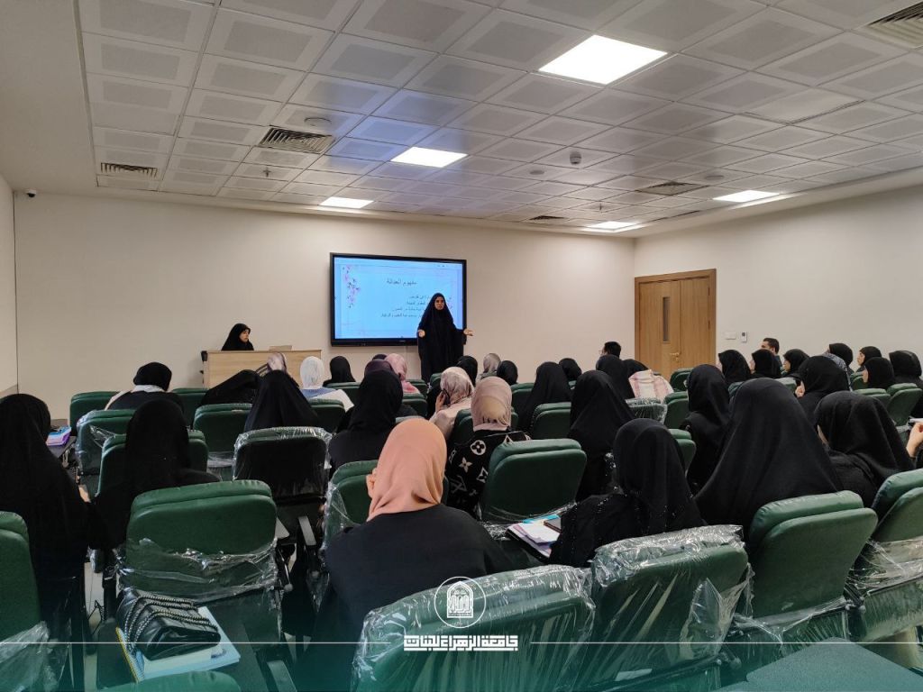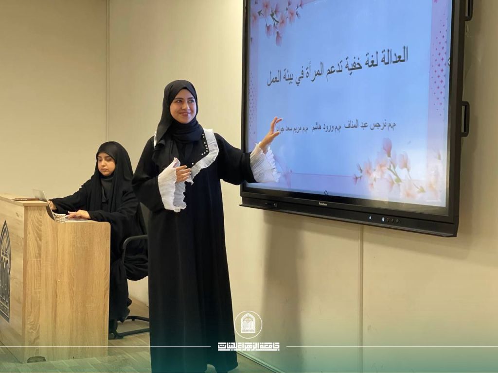 برعاية السيدة رئيسة جامعة الزهراء (عليها السلام) للبنات أ.د. زينب السلطاني، وبإشراف السيدة عميدة كلية التربية أ.د. إيمان سمير بهِيّة، أقامت شعبة شؤون المرأة في جامعة الزهراء (عليها السلام) للبنات، وبالتعاون مع كليات التربية - قسم اللغة الانجليزية، وقسم التعليم المستمر، الورشة التوعوية الموسومة "العدالة لغة خفية تدعم المرأة في بيئة العمل". قدّمت الورشة كلٌّ من: السيدة م.م. نرجس عبد مناف، والسيدة م.م. ورود هاشم، والسيدة م.م. مريم سعد جواد، التدريسيات في ذات القسم.