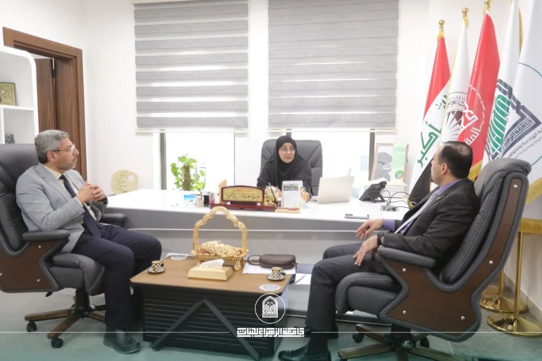 وبحث الطرفان آلیات توسيع آفاق التعاون الأكاديمي بين الجامعتين، ولا سيما ما يتعلق بـ إقرار المواد الدراسية للمراحل الخمس وفق توصيات اللجنة العلمية في قسم هندسة العمارة بجامعة الزهراء (ع)، إضافة إلى مناقشة سبل تطوير المناهج وتبادل الخبرات بما يسهم في الارتقاء بالمسار التعليمي والتطبيقي للقسم.