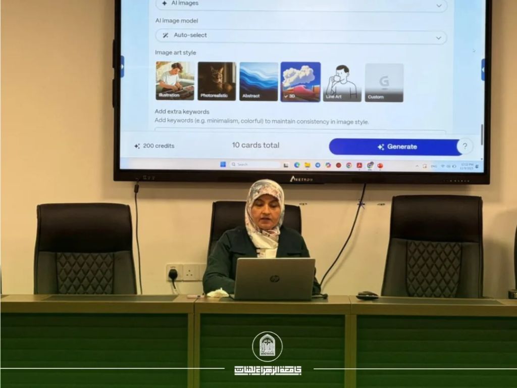 برعاية السيدة رئيسة جامعة الزهراء (ع) للبنات أ.د. زينب السلطاني، وإشراف السيدة عميدة كلية الهندسة وتكنولوجيا المعلومات أ.د. غيداء الملا، وبالتعاون مع مركز التعليم المستمر، نظمت كلية الهندسة وتكنولوجيا المعلومات ورشة تدريبية بعنوان "إعداد العروض التقديمية باستخدام الذكاء الاصطناعي".