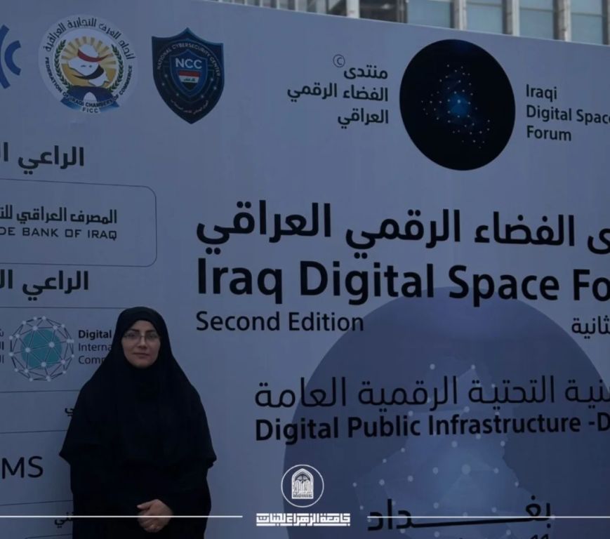 شاركت السيدة عميدة كلية الهندسة وتكنولوجيا المعلومات في جامعة الزهراء عليها السلام للبنات الدكتورة غيداء الملا، في منتدى الفضاء الرقمي العراقي