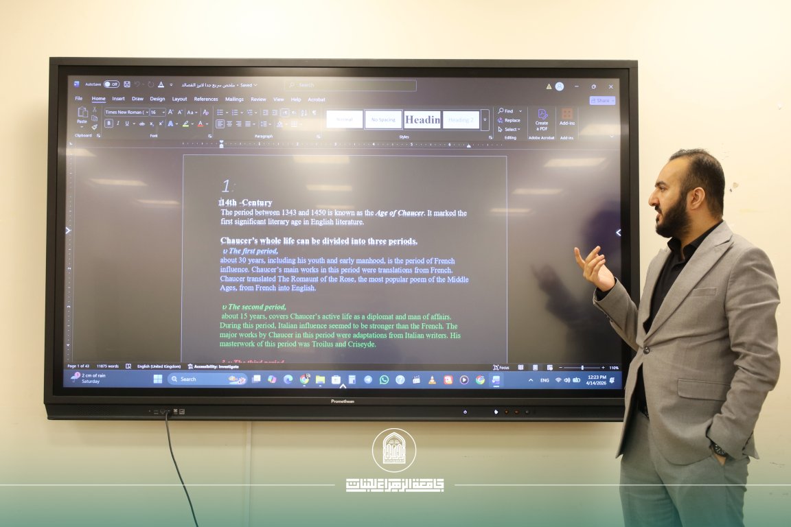 برعاية السيدة رئيسة جامعة الزهراء (عليها السلام) للبنات، أ.د. زينب السلطاني، وإشراف السيدة عميدة كلية التربية، أ.د. إيمان سمير بهية، واصل قسم اللغة الإنجليزية في كلية التربية، بالتعاون مع مركز التعليم المستمر، ترسيخ حضوره الأكاديمي من خلال إقامة دورة تدريبية متخصصة بعنوان "تطوير اللغة باستخدام الأدب"، في خطوة عكست توجهات الجامعة نحو تبنّي أساليب تعليمية حديثة ترتكز على التكامل بين اللغة والأدب.