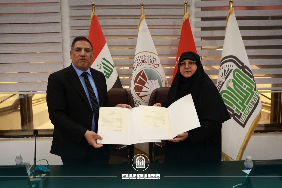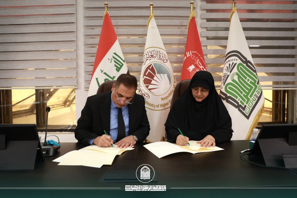 في إطار سعيها لتطوير منظومتها الإدارية والأكاديمية، وتعزيز انفتاحها على المؤسسات المهنية الرصينة، وقّعت جامعة الزهراء (ع) للبنات اتفاقية تعاون مشترك مع الجمعية العراقية لتقنية المعلومات والاتصالات، برئاسة الدكتور المهندس علي ناصر الخويلدي، وذلك بحضور السيدة رئيسة الجامعة، أ. د. زينب الملا السلطاني، في خطوة تجسّد توجه الجامعة نحو بناء شراكات نوعية وترسيخ التكامل بين المسارين الأكاديمي والمهني.