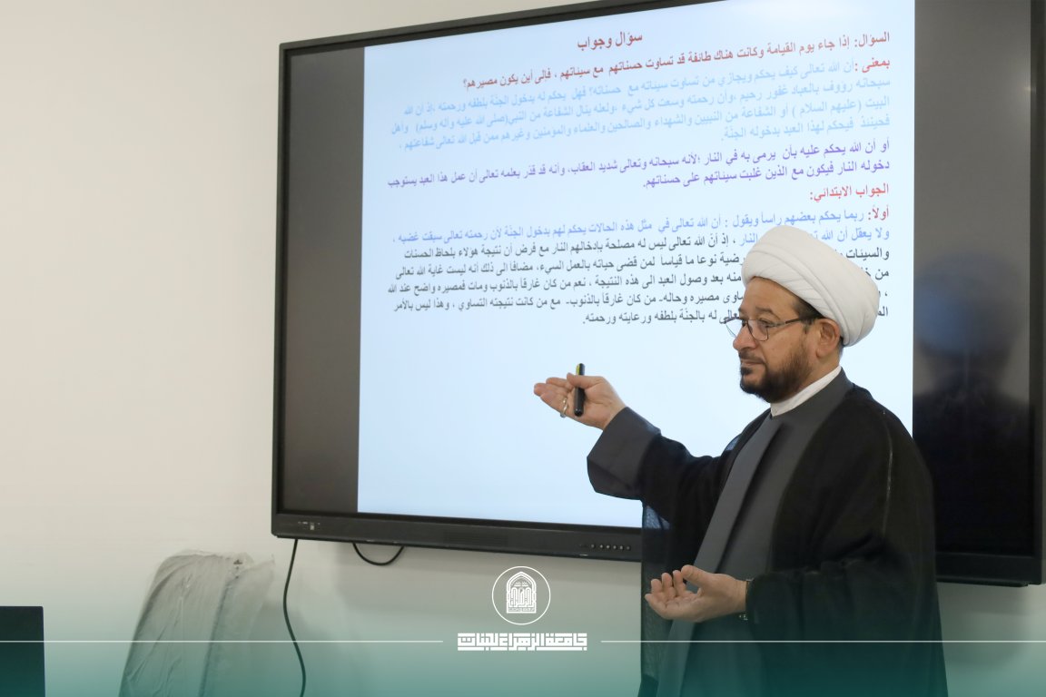 Under the patronage of the President of Al-Zahraa University (peace be upon her) for Women, Professor Dr. Zainab Al-Sultani, and under the supervision of the Dean of the College of Education, Professor Dr. Iman Sameer Bahiya, the Department of Rhetoric and Islamic Education organized a scientific workshop entitled: “The Hypothesis of the Equality of Good and Bad Deeds in the Light of the Qur’anic Text.”