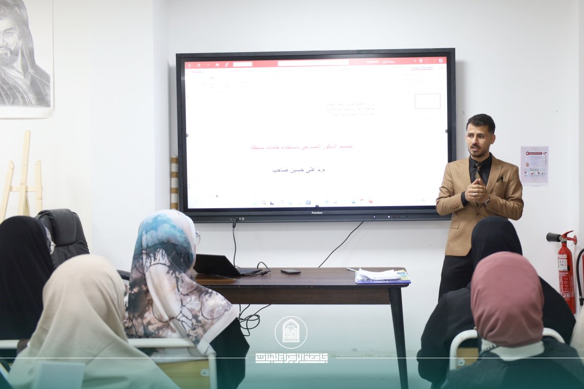 In an atmosphere rich with imagination and aesthetic expression, the Department of Art Education at the College of Education, Al-Zahraa University for Women, organized an artistic workshop titled “Designing Theatrical Set Decor Using Simple Materials,” in cooperation with the Continuing Education Center. The workshop targeted female students of the department, aiming to refine their visual sensibility and develop their creative skills.